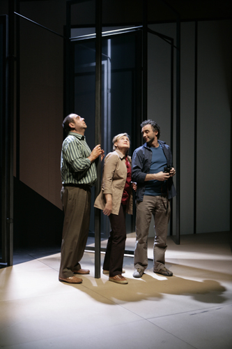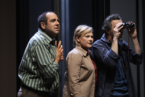 “An overwhelming play that perfectly combines emotion and information… a very dense material, interwoven with historical, political, biblical, philosophical and psychological considerations… Under François Rochaix’s direction, Elzbieta Jasinska, Laurent Sandoz und Pierre Dubey give a very lively performance that borders on naiveté. A choice that may be irritating at times but which has the advantage of alleviating the drama, and which reflects the emotional effervescence typical of anyone living under the permanent threat of “execution”.