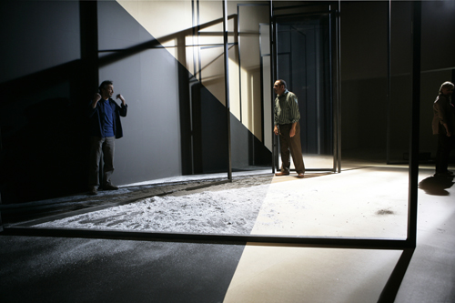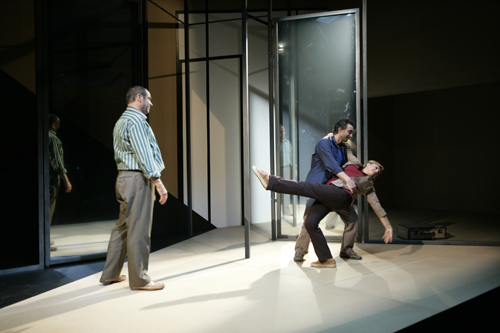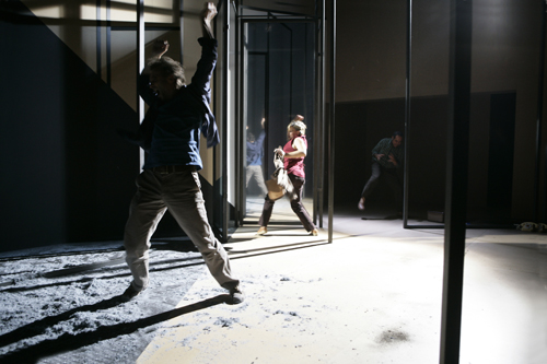 In 2002 and 2004, Dominique Caillat had already spent several months in Israel and the occupied territories, gathering testimonies and information on both sides of the Green Line. The material was used in a play written in German, Kidnapping, which toured Germany in 2004-2005. In 2007, Caillat returned to the Middle-East and updated her research, which are the basis of her new play État de piège as well as a book, La Paix ou la mort (Peace or Death). État de piège uses the framework and characters of Kidnapping but has entirely new dialogues, attempting to rise above the level of day-to-day politics and violence to discover the universal human tragedy that is unfolding at our doorstep.
