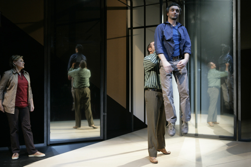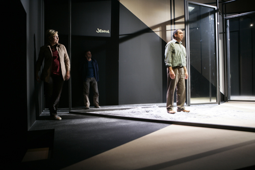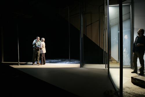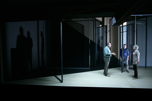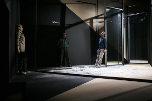 État de piège opened to public and press acclaim on November 20, 2007 at the Théâtre de Carouge in Geneva, in a production by François Rochaix, with Elzbieta Jasinska (Christine), Pierre Dubey (Amos) and Laurent Sandoz (Abdoul). Sets and lighting: Yves Bernard. Sound design: Graham Broomfield. Costumes: Laurence Imstepf et Letitia Rochaix-Ortis.
