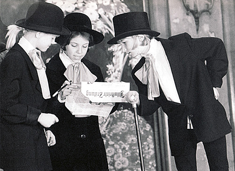 This was Dominique Caillat’s first play for the “Theater in the Vorburg”, whose members at the time children were aged 7-10. The play was performed to great acclaim in castle Namedy in June 1993, in a production by Dominique Caillat. It was revived with another cast in December 2000, with the support of the Rhineland Cultural Foundation.